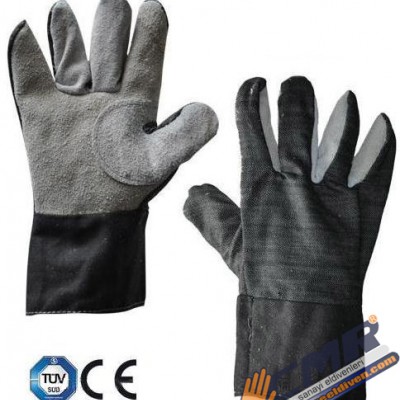 Deri TakviyeliAvuç içi ve tüm parmakları yarma deriden imal edilmiştir.Avuç içindeki takviye kısmı süet deridendir.El üstü kırmızı koton kumaştandır.Avuç içi ısı iletimini azaltan ter emici pamuk astarlıdır.Emniyet bilekliği sayesinde rahatça giyilip çıkarılabilir.Ağır mekanik işlerde, inşaat işleri..